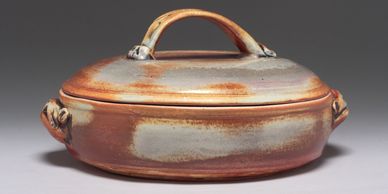 Most of my vessels are wheel thrown and created for kitchen and dining use; mugs, plates, teapots, casseroles, large platters, bowls, wine goblets, utensil containers, etc.