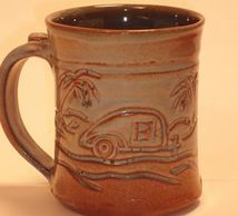 A very popular traveling item, these mugs are sturdy (if not dropped on concrete), microwave and dishwasher safe, and versatile in use. Fill with any beverage. Prices for these terrific pieces are $40.00 each. Let me know if you have a color and design preference.