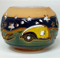 Traveling in comfort with my "Silver Shadow" Little Guy Teardrop, I am frequently on the road. My husband continues to be supportive of my solo trips, especially when I am with groups of helpful, delightful people. I am inspired to have some creative fun, developing a variety of pottery items that are useful and sturdy for trailer travelers.
